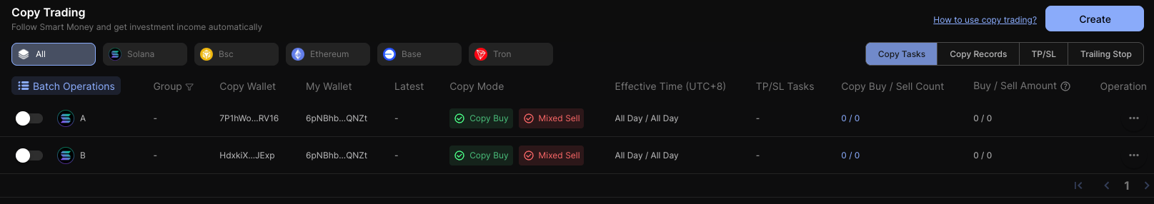 "reservedAmountUI": null, // Stop loss amount (ETH/SOL/BNB/TRX), copy buy will stop when the balance below this amount