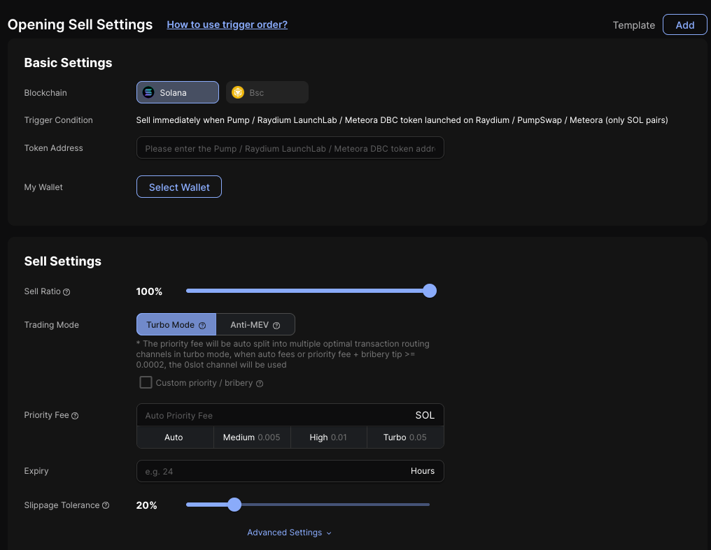 "priorityFee": "", // Priority Fee (SOL), valid for Solana, empty string means use auto priority fee