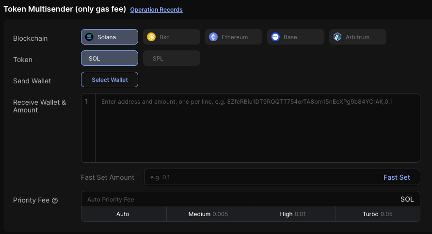 "address": "Fv3WiFNQDWcjXESthBxUAtDrQYgncLWwVLJnvhUoi8mw", // Addresses to receive tokens