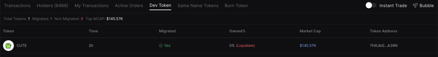 "notMigrated": 2, // Number of non-migrated tokens created by the Dev