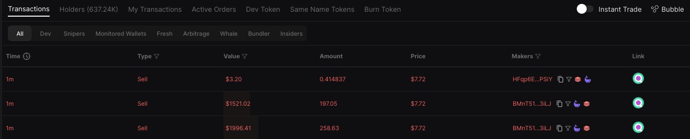 "account": "4NWUKn2tm6k8kPC9izrfE3Mryrvu4QyAawy1JGG8j481", // Wallet address that made the trade (maker)