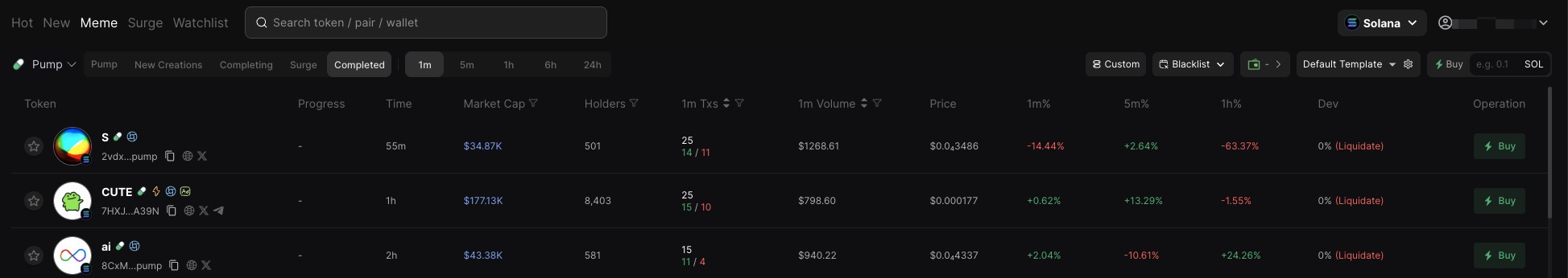 "marketCapChange5m": 3415.41, // 5-minute change in market cap of the current token