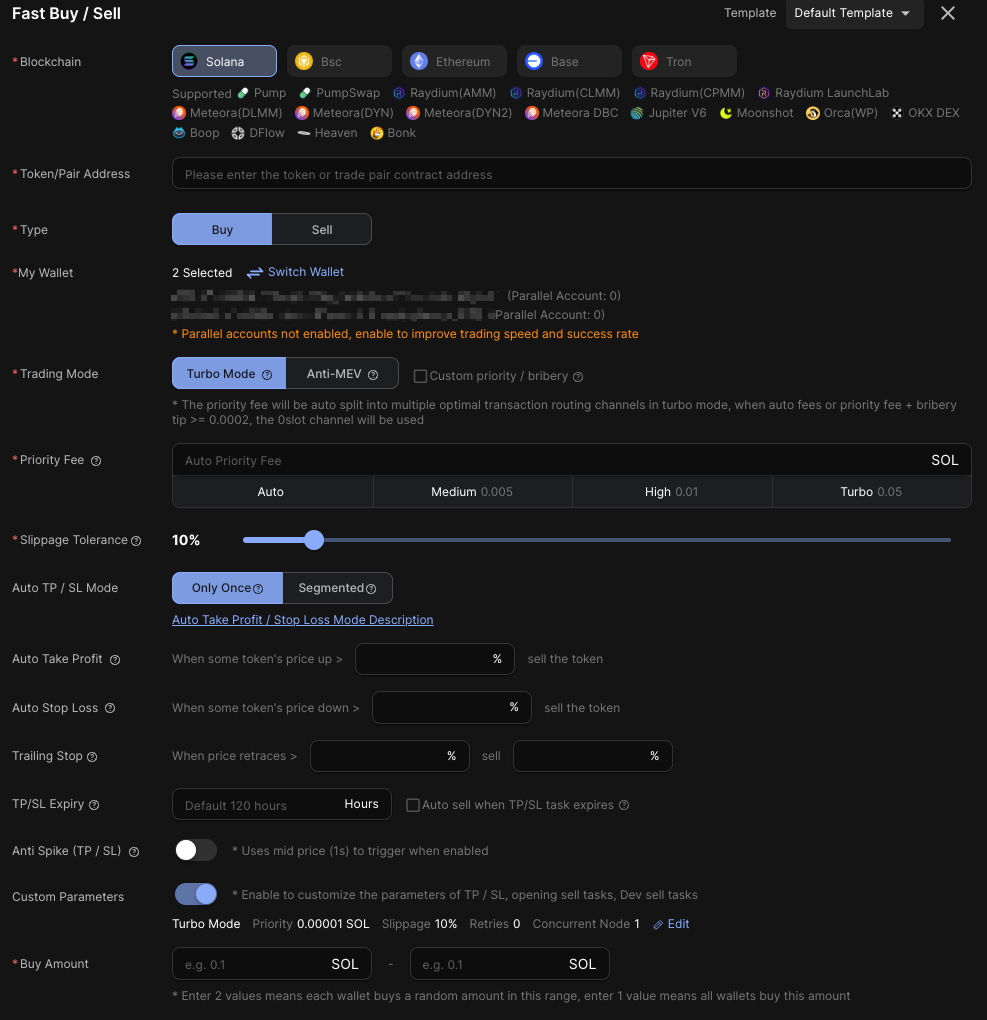 "priorityFee": "", // Priority Fee (SOL), valid for Solana, empty string means use auto priority fee