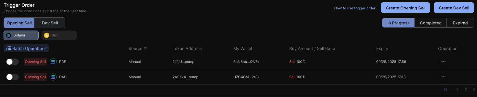 "amountOrPercent": 1, // For buy type, enter buy amount (ETH/SOL/BNB/TRX); for sell type, enter sell ratio (0.00-1.00)