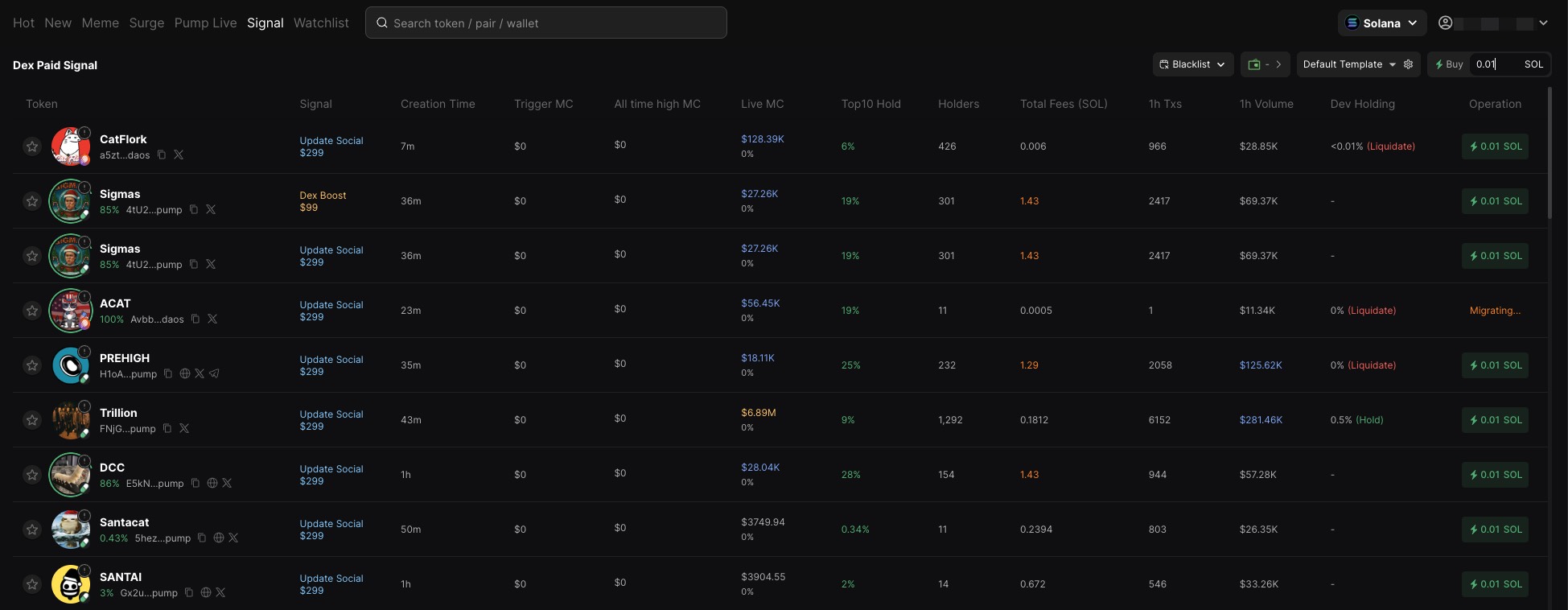 "priceChange5m": 0.09175361202530175, // Price change in 5 minutes (%)