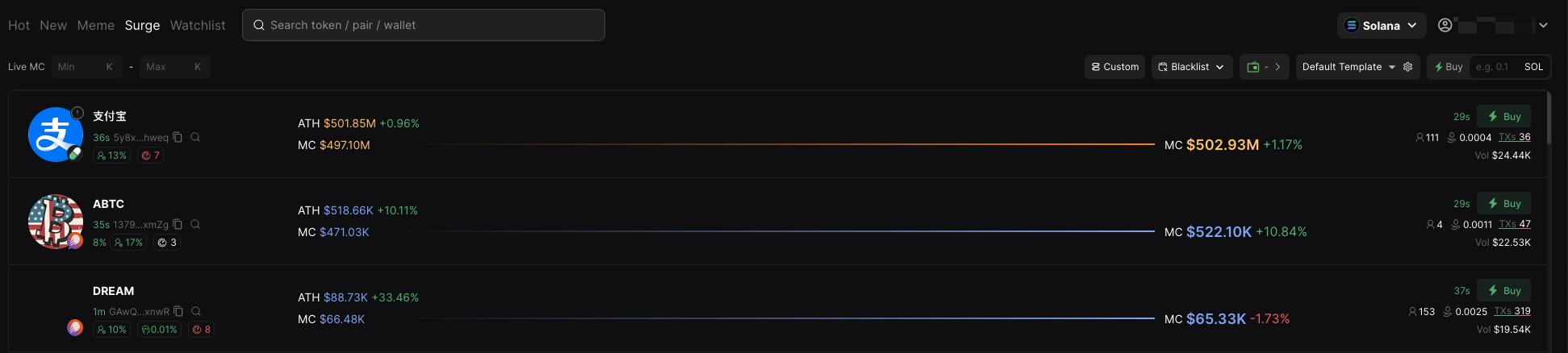 "marketCapChangeRate5m": 0.1811, // 5-minute percentage change in market cap of the current token