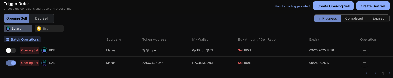 Disable Opening Sellpatch https://api-bot-v1.dbotx.com/automation/migrate_orderThis API is used to enable / disable a opening sell taskFreePlusProEnterpriseCredit Usage✅✅✅✅0 Response Data JSON{ "err": false, // Error or not "res": "" // Response data } Request Parameters visualization reference