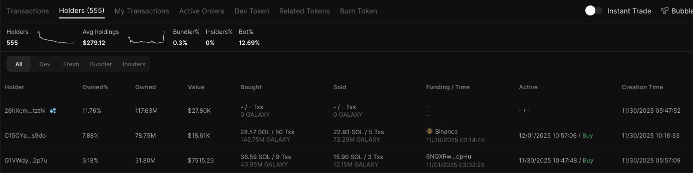 "holdingRatio": 0.12674045970752223, // Token holder holding ratio