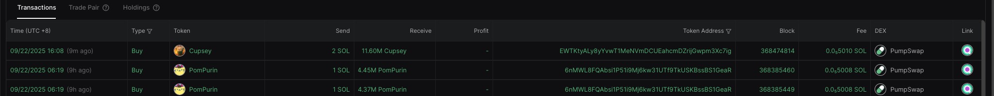 "solAmount": 0.941217005, // Amount of SOL spent in this trade