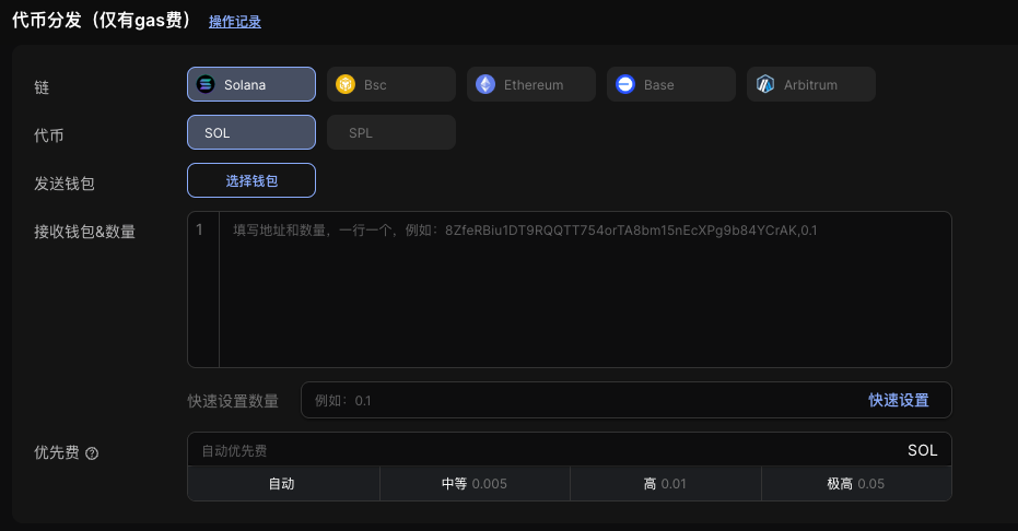 此API用于快速将代币发送到多个地址