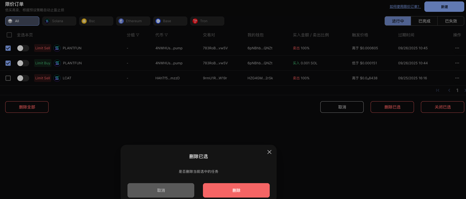 "id": ["mh480bzb000icm", "mh378onq000aeu"] // 需要批量删除限价订单ID