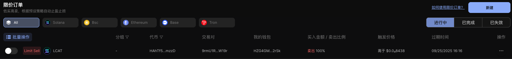 开/关限价订单patch https://api-bot-v1.dbotx.com/automation/limit_order此API用于启用/禁用某个限价订单FreePlusProEnterprise积分消耗✅✅✅✅0 响应数据 JSON{ "err": false, // 是否发生错误 "res": "" // 响应结果 } 请求参数可视化参考